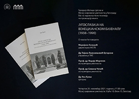 U Muzeju savremene umetnosti Beograd u četvrtak 25. novembra, 2021. godinе u 17 časova - Nakon uspešne promocije u Novom Sadu, Galerija Matice srpske i Muzej savremene umetnosti Beograd predstavlјaju knjigu Jugoslavija na Venecijanskom bijenalu (1938–1990) – Kulturne politike i politike izložbi autorke dr Ane Ereš. Na promociji će pozdravne reči uputiti Marijana Kolarić, direktorka MSUB i dr Tijana Palkovlјević Bugarski, upravnica Galerije Matice srpske, dok će o knjizi govoriti istoričarke umetnosti prof. dr Lidija Merenik, prof. dr Simona Čupić i sama autorka dr Ana Ereš.