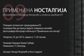 U holu zgrade Narodne banke Srbije na Slaviji u četvrtak, 25. jula, u 11.30 časovasvečano će biti otvorena sedma po redu izložba fotografija „Primenjena nostalgija“. Izložbu,u saradnji s Ministarstvom spoljnih poslova Vlade Srbije, organizuje Kancelarija za evropske integracijekao deo njene aktivnosti u realizaciji „Strategije komunikacije Vlade o pristupanju Srbije Evropskoj uniji“.